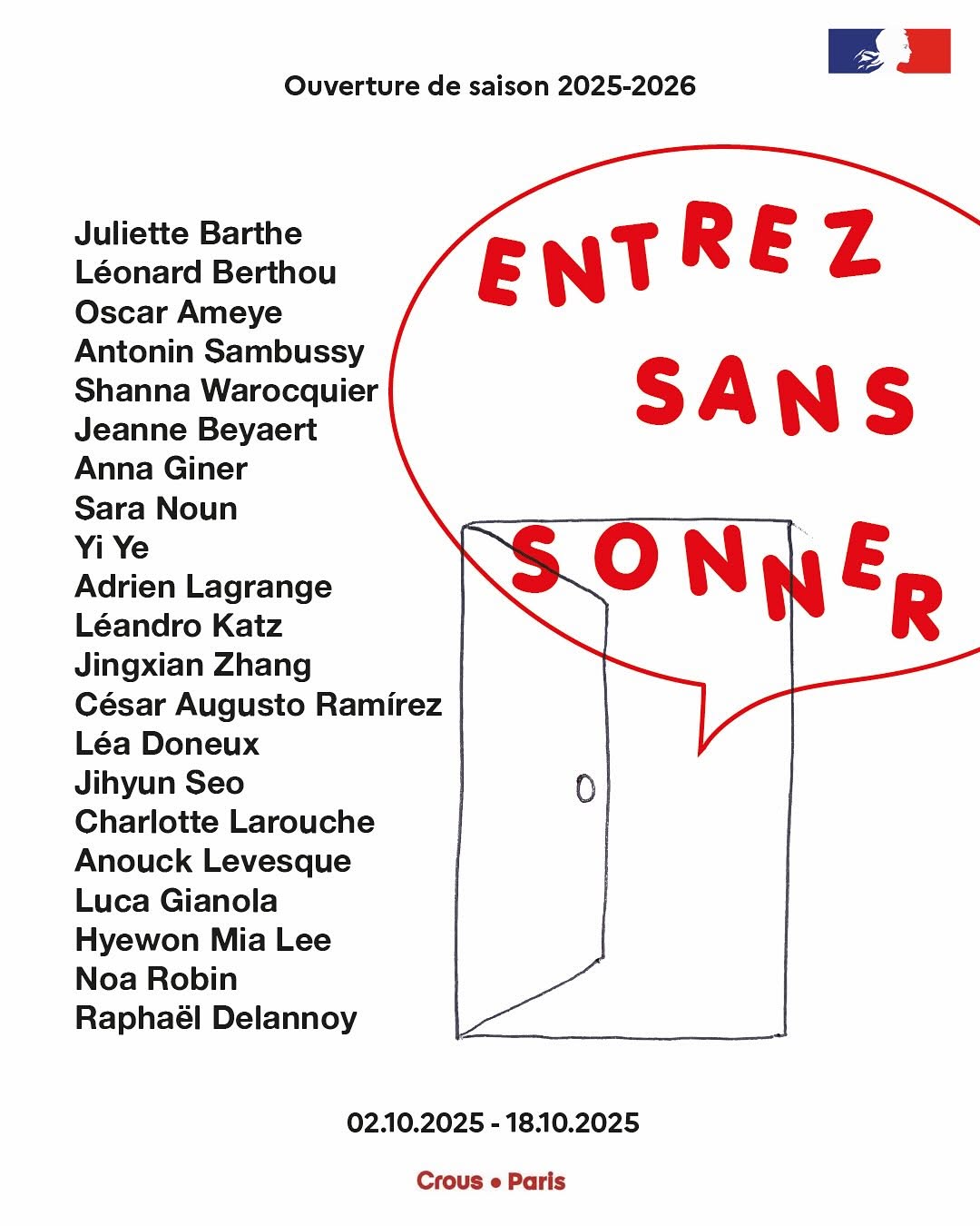 Artistes  :    Juliette Barthes, Léonard Berthou, Oscar Ameye, Antonin Sambussy, Shanna Warocquier, Jeanne Beyaert, Anna Giner, Sara Noun, Yi Ye, Adrien Lagrange, Léandro Katz, Jing Xian Zhang, César Augusto Ramírez, Léa Doneux, Jihyun Seo, Charlotte Larouche, Anouk Levesque, Luca Gianola, Hyewon Mia Lee, Noa Robin & Raphaël Delannoy